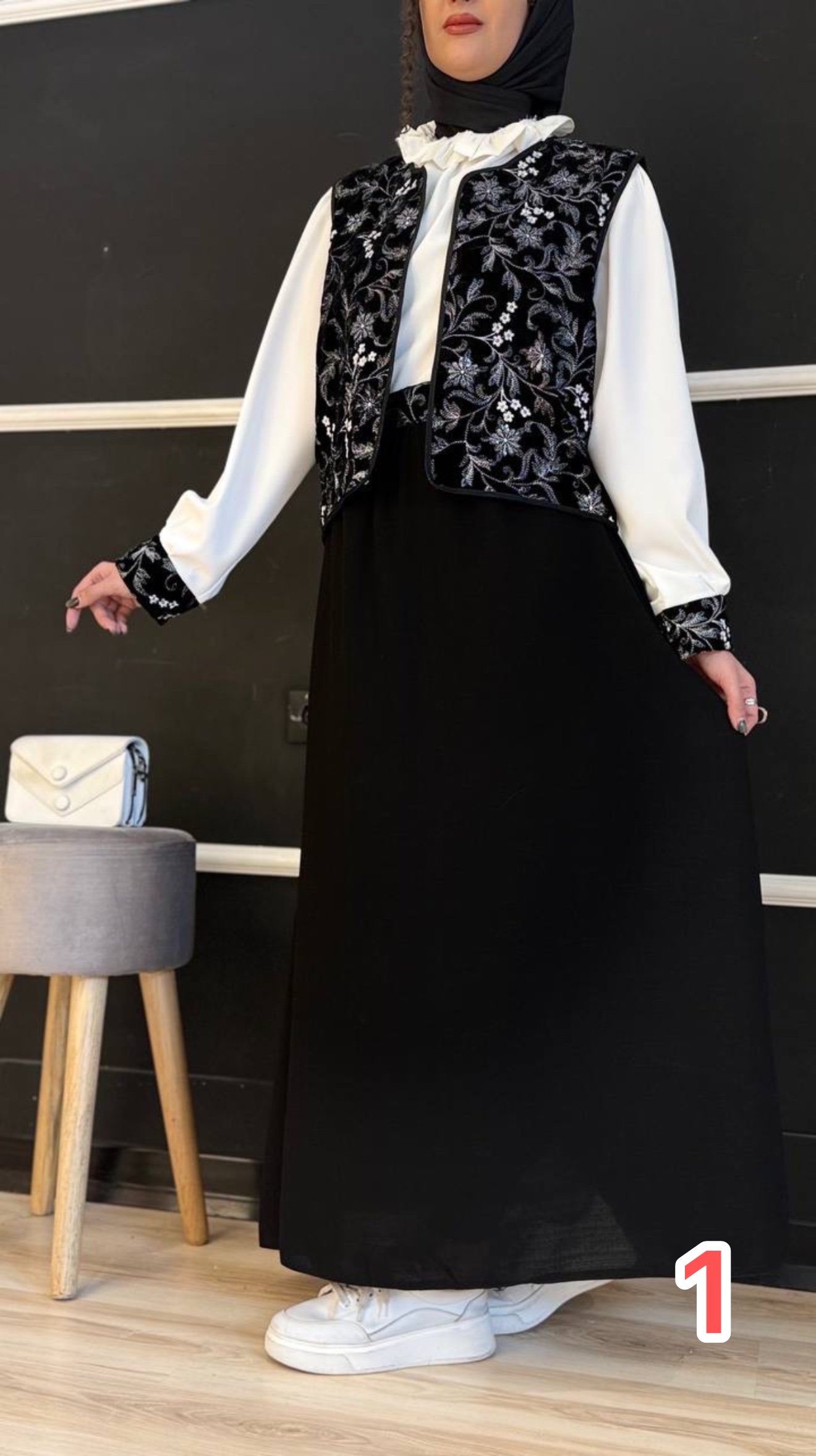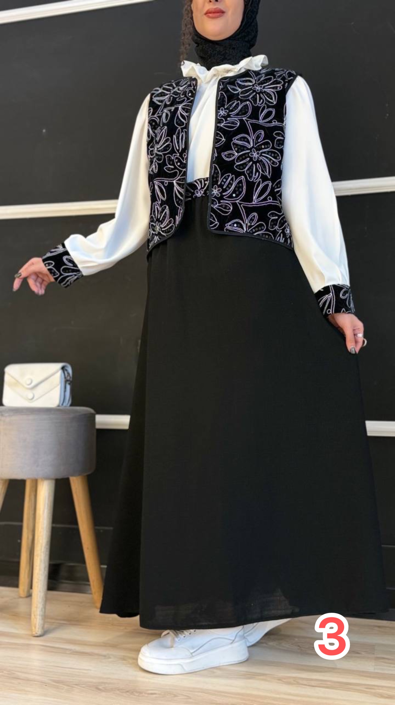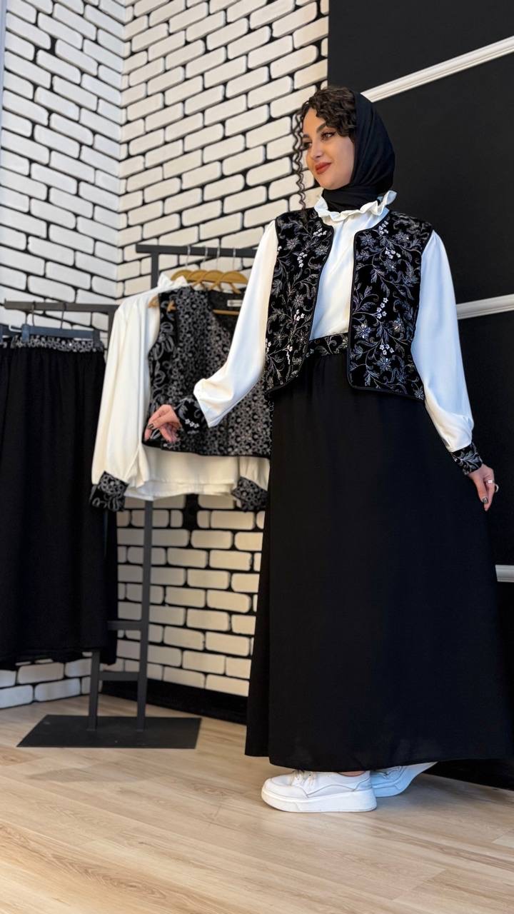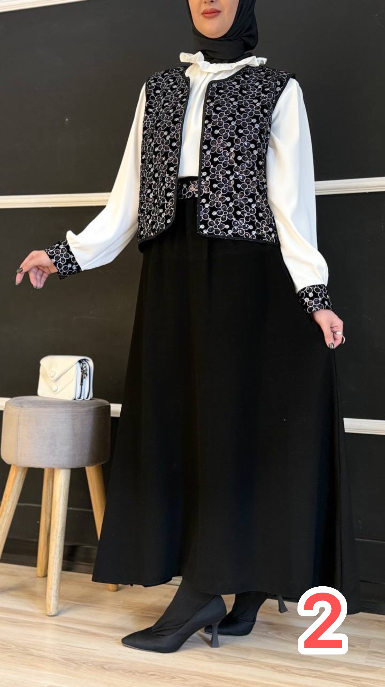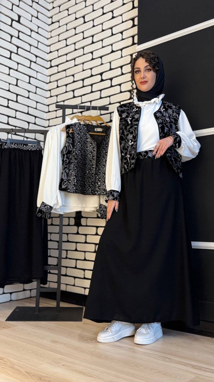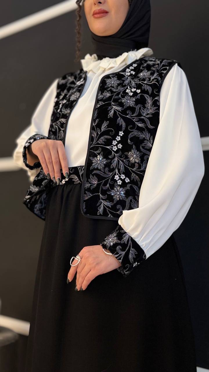 عنوان: ست3تیکه جلیقه سارافون و دامن سرمه دوزی سوزن دوزی دل آرا