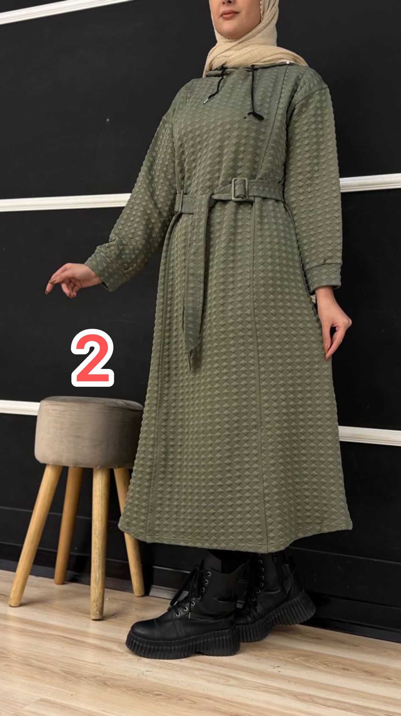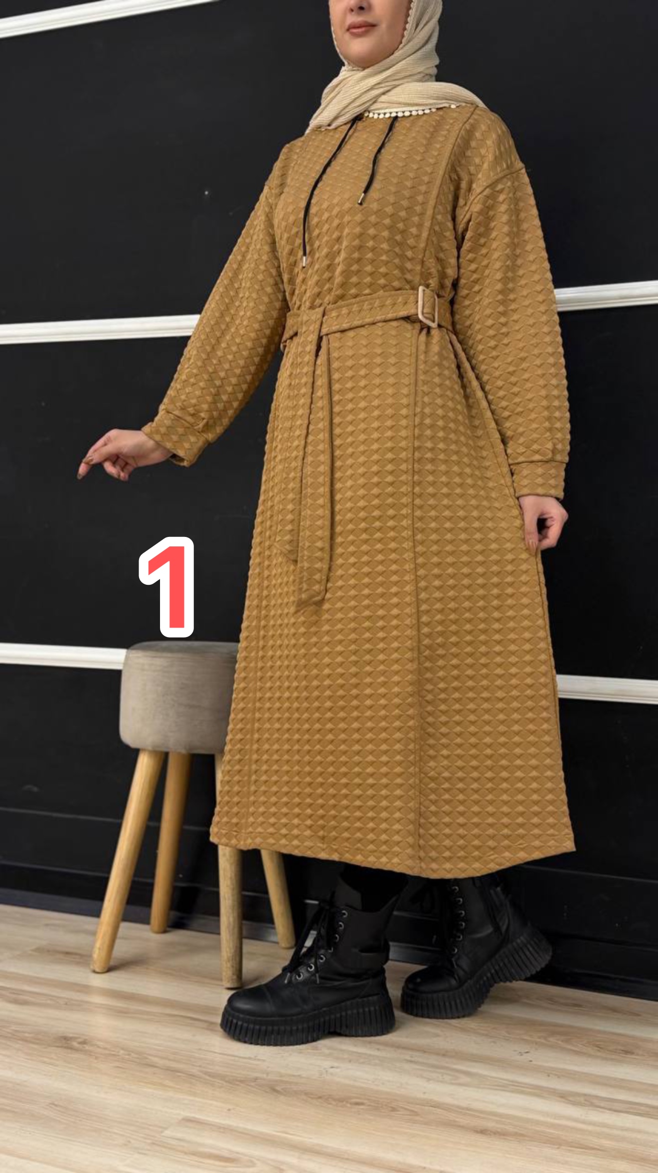 عنوان: مانتو هودی مراکشی بیسکویتی کمر سگکی